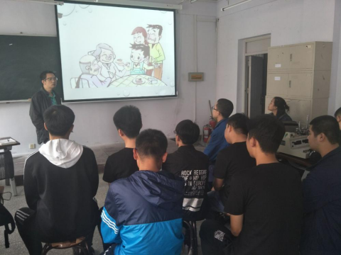 随后,张庆丰老师进行了主题发言。以“礼”为始,以“梦”为纲,从人际交往到有效沟通原则,从小目标的养成到大目标的树立,从专业课程体系到择业、就业、创业……深入浅出地讲述了学习的目的、意义和方法,就业的形势、条件和前景!
