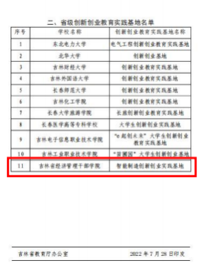近日,吉林省教育厅公布了首批省级创新创业学院、省级创新创业教育实践基地名单,我校“智能制造创新创业实践基地”成功获批吉林省创新创业教育实践基地。