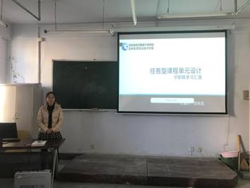数字媒体与信息技术教研室主任刘先花老师从有效课堂、任务型课程单元设计、课堂教学、我的课堂教学以及我的感想五个方面进行汇报。刘老师首先说明了何为有效课堂,并指出任务型课程单元设计的载体可以通过项目教学、问题教学、案例教学以及活动教学来实现。并以在宁波职业技术学院的一节英语课为例与各位老师分享了上课的感想,同时向各位老师展示了《计算机应用基础》课程设计。最后刘老师表示,通过培训学习,感受到了宁职院改革决心很强,从领导、到专业教师群策群力,共同努力,并希望信息化教学手段能尽快在我分院教师普及。