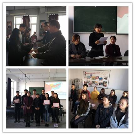 刘庆红院长宣读《关于对学徒制班优秀学员表彰的决定》,并对荣获优秀学员称号的5名学员颁发证书和奖品,她希望所有同学在接下来的实习期间都能走出去,要相信自己,要不怕苦和累,要做好自己,要自我规划、自我管理、自我激励、自我赋能,以独有的核心竞争力彰显个性、证明自己。周雪娟书记祝贺获奖学员的同时提醒同学们在实习时要注意安全,用现在的行动去迎接属于自己的青春季节,享受生活的美好。邓副院长说扶上马,送一程,愿所有同学都能飞得高,走得远。高莹莹老师希望所有同学能够快速成长,不断的挑战自我、超越自我、战胜自我。張飛飛老师说同学们正值青春风发之时,希望同学们努力撒播辛勤的种子,踏实工作,不怕失败,勇往直前。学长孙少颖从亲身经历讲述了自己的求职和工作过程,告诫同学们初入职场不能怕苦怕累,不要太在意工资,要以自己的成长进步为目的。董野讲述了自己专升本的经历和本科生活的美好,鼓励想继续求学的同学,只要肯付出,必定能成功。最后,获奖的同学纷纷发表感想,表示感谢和不舍。