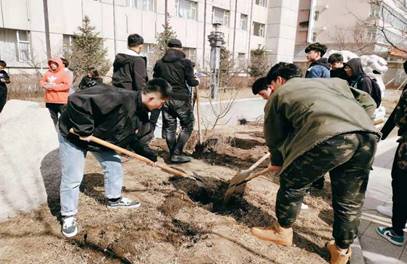 春风三月经管院,一树新栽益四邻。3月12日中午,信息传媒学院在院部办公楼前开展了植树节志愿活动。团总支书记刘庆、学生会成员及团员代表参加了此次活动。