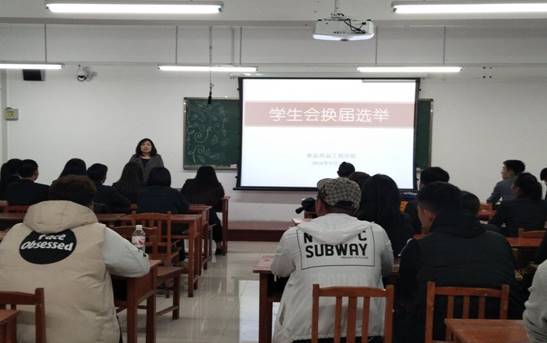 为加强学生会干部队伍建设,学院于10月17日星期三下午召开一年一度的学生会换届竞选活动。参加大会的有,党总支副书记杨玫、团总支书记沈娟。本次大会由沈娟主持。