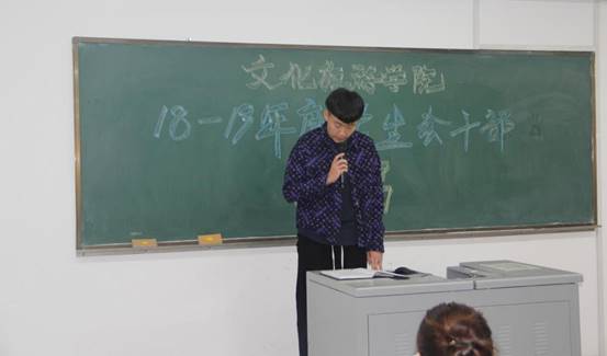 为加强学生会干部队伍建设,10月10日下午3点,我院举行2018——2019学年学生会换届选举大会。会议在教学楼307举行。党总支书记田小龙、团支部书记刘沫老师,2017级辅导员吕佳蔚老师以及学工干事冯泽奇老师出席本次大会。
