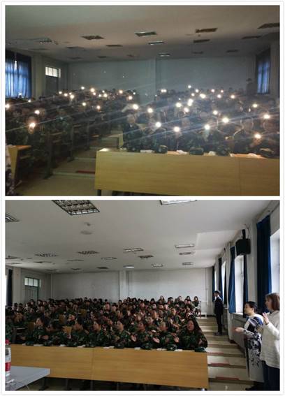 最后,助导们将教室的窗帘拉合、灯关闭,同学们将手机的手电开启,在一片闪闪星光、沉静唯美中,全体合唱歌曲《夜空中最亮的星》,不惧孤独、追随梦想的内涵在此刻格外应景、嘹亮。