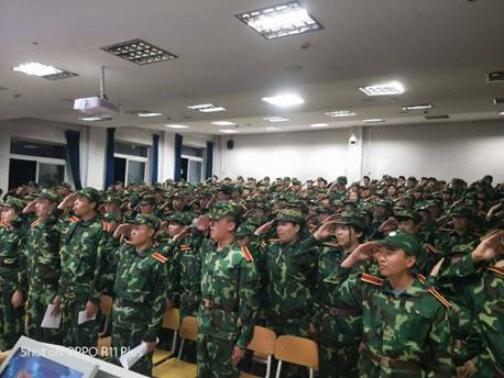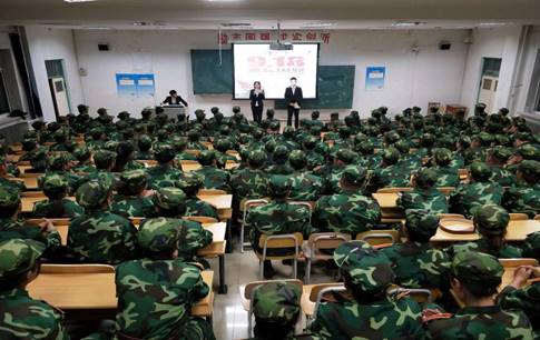 为增强同学们的民族责任感和爱国情怀,大家一起观看了纪录片《满江红·抗战珍稀影像全纪录》。短片中无畏的民族英雄,让学生们敬佩不已。几名新生上台发言,表达了他们对祖国的赤子情怀。