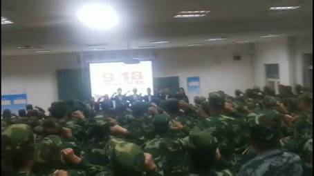 在“9·18——勿忘国耻”主题演讲环节,同学们侃侃而谈,表达了对侵略者的愤恨以及对祖国的热爱。最后,全体同学起立宣誓。