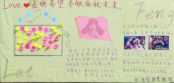 本次活动凝聚我系学子力量,通过奉献爱心帮助贫困儿童。旨在大力弘扬雷锋精神,进一步关爱贫困儿童的学习生活和身心健康,在那些孩子心中埋下一颗希望的种子,让梦想在孩子们的心中扎根发芽。助人为乐情长在,雷锋精神心永存。铁肩敢将道义担,经济管理学院学子用自己有限的能力,为社会创造着无限的温暖,用行动践行和传播着雷锋精神。壮大志愿者服务队伍,拓展志愿服务活动领域,延伸志愿服务活动内容,创新志愿服务形式,经管学子从未止步。