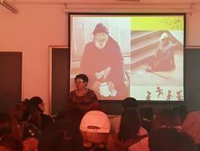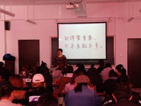 孙瑞波老师首先用一幅沙画《当你老了》开始了今天的主讲内容,接着用一张当街乞讨的老人图片,提出疑问:当你老了,回忆你的青春、梦想,你会想起什么?当你老了,你又会是什么样子?当你老了,你又会是怎样的生活状态?