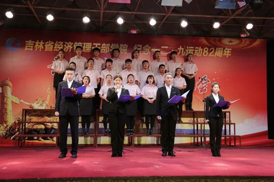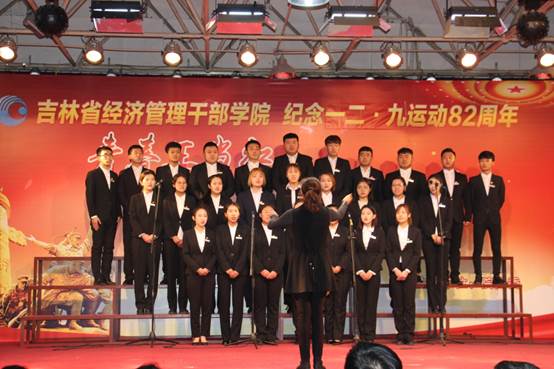整场演出学生们表情刚毅,目光坚定,声音浑厚有力,场面气氛热烈。一曲曲激荡人心的合唱掀起了一阵又一阵的热浪,激起了全场师生的强烈共鸣。一首首耳熟能详的经典曲目,一次次把学子们的思绪带到那个战火纷飞的年代,也一遍遍在经典传歌中重温难忘的岁月,传递中国正能量,感悟伟大复兴的中国梦。
