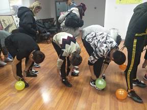 此次活动为团队赛,第一环节,每2个人分为一个小组,将每个小组脚踝上绑的气球踩爆,气球都被踩爆的小组被淘汰,最后剩下的三组进入决赛,被淘汰的下次例会表演节目。同学们尽自己最大的能力,和队友的配合,争取取得好成绩,成绩第二,友谊第一!
