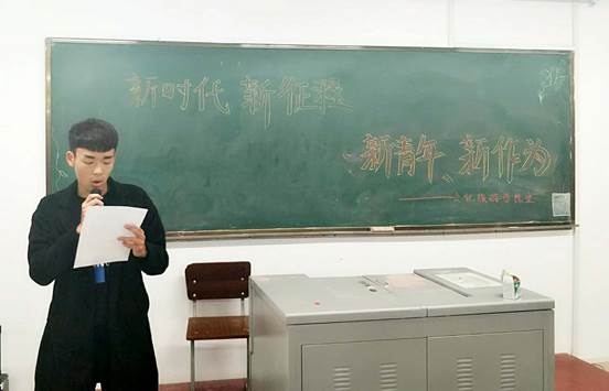 此次活动分成演讲组和朗诵组进行。下午16时20分,团总支、学生会全体成员及各班学生代表穿着整齐的在307教室等候着活动开始,首先由团总支副书记郎佳靖向学生介绍关于十九大报告中有关青年学生的重点内容,接下来各班派出的优秀学生代表纷纷上台进行演讲和朗诵。