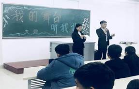 2017年11月16机电工程在高新校区A504开展了 “我们听你说”脱口秀比赛。出席本次活动的有机电工程学院党总支书记宋玉红,2016级学生会全体成员,2017级全体学生。