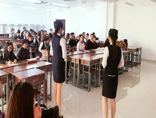 各组选手在临场表演时,表现出的果敢自信和风趣幽默,引来台下阵阵喝彩。比赛全程气氛热烈,互动积极。经过紧张激烈的角逐,最终高铁1班陈思组和李月娇组获大赛一等奖;高铁2班赵玉琳组、空乘班谢雨琨组获二等奖;高铁1班郭莹组、旅游班胡天岷组、高铁2班赵秋阳组和高铁2班冯亚萍组获三等奖。