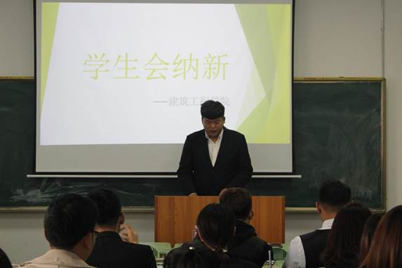 建工学院院长单旭、党总支副书记吕小丽亲临现场,对此次换届大会高度重视。团总支书记罗键宏明确的指出了大学院校社团中广泛存在的矛盾和问题,鼓励在场的所有学生干部应该拿出沉着干练的处事态度,求创新、谋发展的思想,要求我们所有学生干部必须要独挡一面,培养独立处事的能力,身体力行起到模范带头的作用。