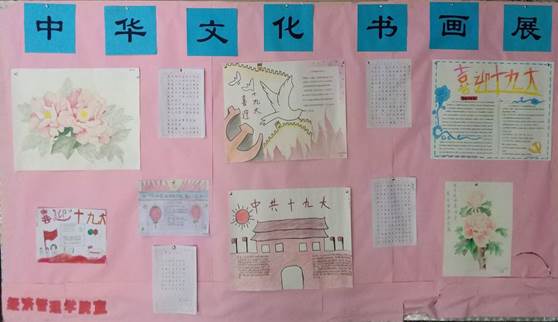 为认真贯彻落实习近平总书记在高校政治思想工作会议上的讲话精神,大力弘扬和传承中华优秀文化,喜迎党的十九大召开,传承中华文化,打造书香校园。经济管理学院组织开展喜迎十九大系列活动之传承中华文化书画展。