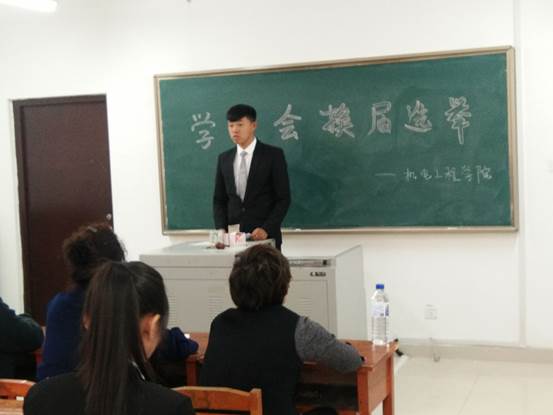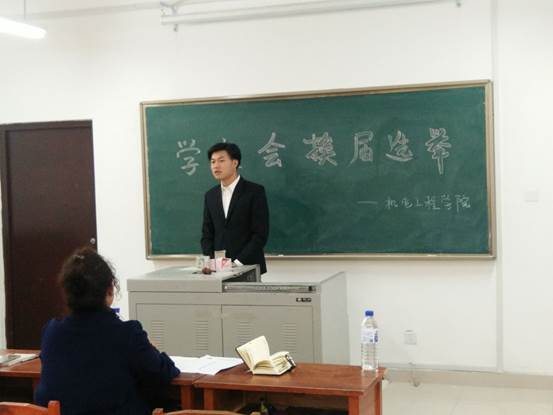 学生会是青年学生自己的组织,在团结广大学生、服务学校中心工作、服务学生成长方面发挥着重要作用。过去的一年,在全院师生和学生会成员的共同努力下,我院学生工作取得了不俗的成绩,学生的思想道德、综合素质也取得了较高层次的提高。为了使学生工作更加出色,学生素质更进一步提高,机电工程学院于2017年10月11日下午14:00,机电工程学院在高新校区教学楼505开展了学生干部换届选举大会。