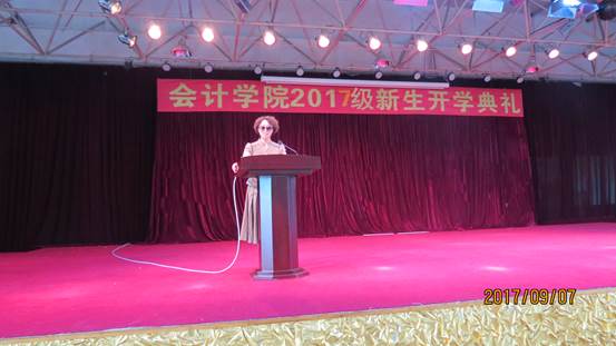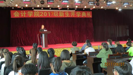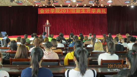 9月7日下午13点,会计学院2017级新生开学典礼在前进校区6楼礼堂正式举行。出席本次大会的有会计学院全体领导、团总支书记、新生辅导员及各教研室主任、教师代表、在校生代表、新生代表。大会由会计学院党总支副书记南洪吉主持。