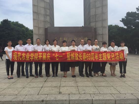 为落实学院党委召开推进“两学一做”学习教育常态化制度化动员部署会议,在迎接中国共产党建党96周年之际,现代农业学院全体党员到长春市南湖公园解放纪念碑,开展了庆“七一”暨解放长春69周年主题党日活动。