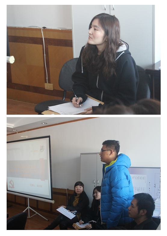副书记田晓龙首先说明了本次民主生活会的主题、目的和意义,之后10名学生入党积极分子做了简要的自我介绍,副书记田晓龙指出学生党员应是学生中品学兼优的佼佼者,更应是率先垂范的好学生,因此应该扩大监督范围,即从党员老师监督扩大到全体教师监督并提前考察。积极分子与老师见面之后,作为老师在日常教学过程中的重点监督和考察对象,最后通过全体老师的客观评价推优发展学生党员,全面提高学生党员的综合素质。