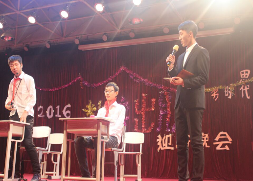 在精彩的开场舞中,数字出版学院迎新晚会正式拉开帷幕。首先由副书记田晓龙为此次晚会致词,他表示此次晚会是一个交流的晚会,是一个沟通的晚会,希望全体同学都融入到数字出版学院这个大家庭里,同时要求大家在期末考试中能够诚信考试,考出好成绩,最后为我分院四十五名即将赶往昆山实习的学生做了安全提示,祝愿他们一切顺利。