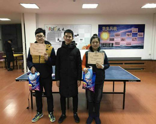 本次比赛中,共有来自大一各班的男队员12名和女队员12名参赛,担任此次比赛的裁判员的是学生会副主席吴昌优和体育部部长李永轩,由体育部所有成员担任此次比赛的监督员。参赛队员在比赛中展现出了勇于拼搏的精神风尚,赛出了水平,赛出了风格,直拍、横拍、扣球、旋转球、弧线球等都得到了一一展现,选手们精彩的比赛不断引来了现场观赛同学的喝彩声。2016级酒店管理班的选手杜月辉擅于连续扣杀,表现尤为突出,开局直接以0:11的比分晋级了决赛。历经了一个多小时的激战,男子组由2016级酒店管理3+2班的高硕获得冠军,女子组冠军由2016级酒店管理班的薛丹获得。