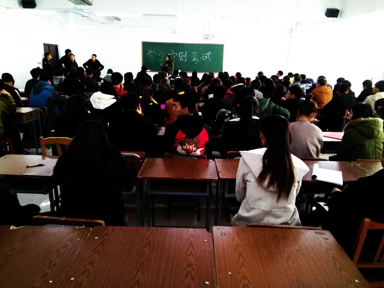 为了全面贯彻学院的各项规章制度,维护学院正常教学秩序和生活秩序,在分院院长和书记督促下,为了使16级新生在未来学习与生活中更详细的解读学院的规章制度,促进学生德智体等方面全面发展。同时让他们熟悉大学期间的各种考试形式,引导他们自觉遵守考场纪律,杜绝违纪行为,为今后的考试打下好的基础。建筑工程学院于2016年11月3日十一点四十在高新教学楼306,精心准备组织了16级学生管理守则考试。