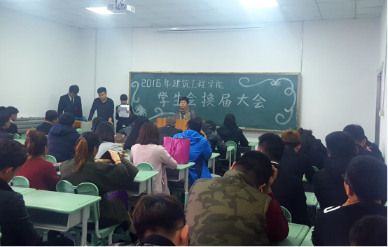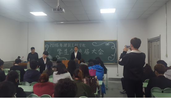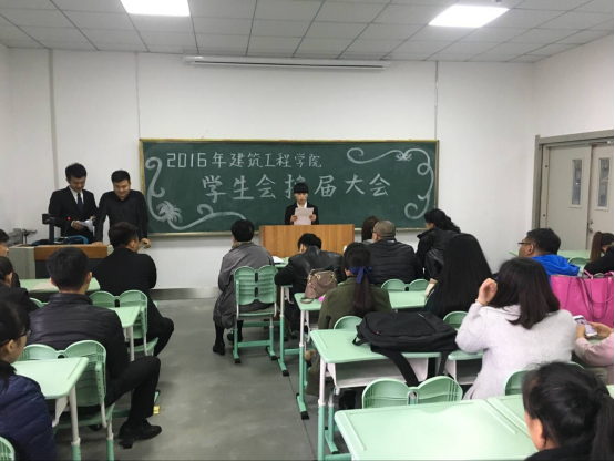 为保持建筑工程学院学生会工作的传承性与连续性,及时有效的为学院学生干部队伍补充新生力量,建筑工程学院2016年10月19日下午1点,在实训教学基地举行了一场建筑工程学院学生会换届选举大会,出席此次会议的领导老师有:党总支副书记李萍、吕晓丽,团总支书记罗键宏及全体辅导员。