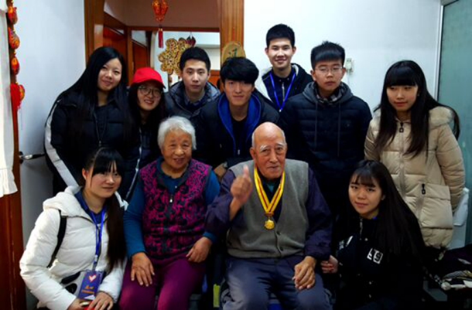同学们在老干部处赵处长和数字出版学院沈老师、赵老师的带领下走进了冯老家中。冯老是我院退休老干部,生于1927年,十岁加入了儿童团、并且当上了儿童团的团长, 1943年9月当上了游击队队长,并成为了一名共产党员,行伍35年,参加过抗日战争、解放战争、抗美援朝战争。