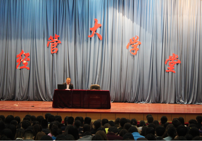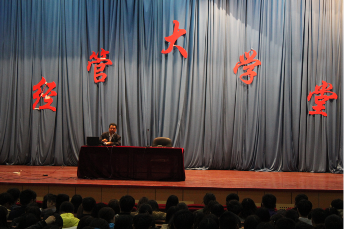 2015年11月4日下午,经济管理学院在报告厅举办了“经管大学堂,就业知识涨”主题职场经验讲座,本次活动意在让大三同学了解就业知识,尽快适应职场,为日后在职场中更好的发展做了铺垫。讲座由长春爱尔眼科医院公司CEO徐增旭主讲。出席本次活动的有院长蔡金明、副院长梁凯膺副、书记刘艳珍、副书记杨玫以及两位大三辅导员。