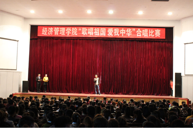 为弘扬民族精神,激发大学生的爱国热情,继承先辈们的优良传统,培养学生们爱国、爱校的情怀,丰富大学校园生活,经济管理学院于2015年10月28日下午在科学报告厅举行“歌唱祖国,爱我中华”合唱比赛。参加本次活动的领导和老师有经济管理学院院长蔡金明、党总支副书记刘艳珍、党总支副书记杨玫、学工干事杨旭、团总支书记张辛未及全体辅导员。