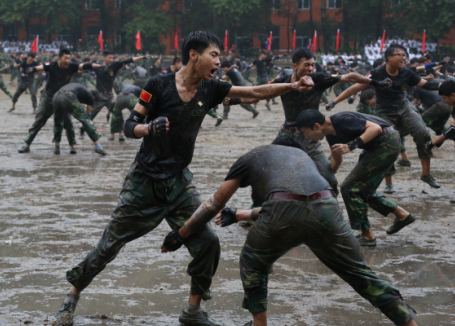 “千磨万击还坚劲,任尔东西南北风”,此刻,阅兵场上,风雨交加,雷声如鼓。560名表演方队新生斗志昂扬、喊声震天!男子捕俘拳术方队,女子匕首术方队、队列操方队进行了汇报表演。他们分和有序的动作,敏捷矫健的身姿、号令严明的组织纪律性,充分展现出了军人的坚强的意志和顽强的战斗作风。大雨纷飞,士气如虹,精彩的表演激起了全场雷鸣般的掌声。他们所展现出的昂扬向上的精气神、不畏艰苦的态度以及雷厉风行的执行力感染了在场的每一位师生,这种正能量也必将激励学院广大教职工在学院转型发展中勇挑重担。