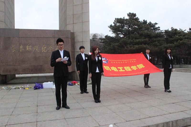年年清明节,岁岁祭忠魂。为悼念革命烈士,缅怀他们的丰功伟绩,继承光荣的革命传统,4月2日早上五点,机电工程学院90余名学生干部及入党积极分子在团总支的组织下,前往长春市南湖公园解放纪念碑,开展了主题为“清明祭英烈 共铸中华魂”的清明节祭扫活动。