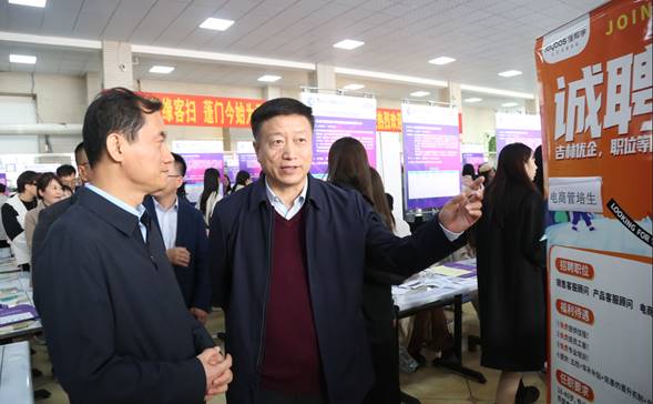 学校党委副书记、院长谢景武在致辞中代表全体师生,向莅临指导的省教育厅相关领导表示衷心感谢,向区政府人社局、就业服务局、硅谷街道的长期支持致以崇高敬意。他介绍了学院办学历史及毕业生就业情况。他表示学院是我省首批开展高等职业教育的院校之一,也是我省深化创新创业教育改革示范校、首批现代学徒制试点学校。建院七十年来,累计培养高职毕业生2万余人,培训经济管理类干部4万余人,为我省经济社会发展培养了大批优秀领导干部和高素质技能型人才。他指出学院党委将在省教育厅指导下,同各地方人社部门、属地街道一道,不断深化政校合作,瞄准吉林全面振兴发展战略,围绕“新服务、新电商、新基建”产业需求,互利共赢、开放发展,精准把握就业形势,积极应对困难挑战,努力提升工作实效,奋力推动学院就业工作开创新局面,再上新台阶。