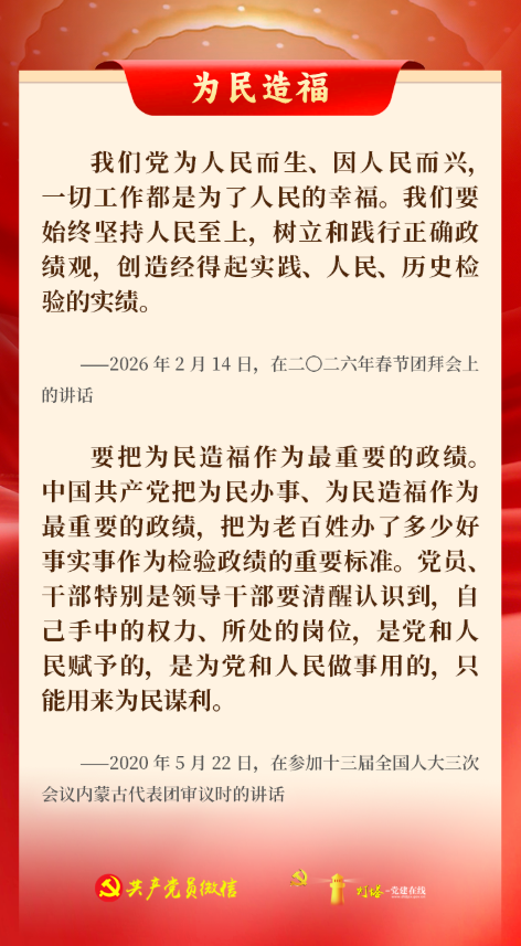 中共中央办公厅印发《关于在全党开展树立和践行正确政绩观学习教育的通知》,明确把“立党为公、为民造福、科学决策、真抓实干”这16个字,作为学习教育的总要求。“十五五”开局之年,一起学习总书记相关重要论述,将16字总要求内化于心、外化于行,树立和践行正确政绩观,投身强国建设、民族复兴的关键一程。
